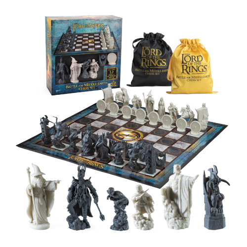 A chess set inspired by The Lord of the Rings trilogy, featuring plastic pieces representing a wealth of iconic characters from Middle-earth.