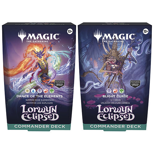 - This Bundle includes 4 Lorwyn Eclipsed Commander Decks, with 2 Dance of the Elements and 2 Blight Curse. Each includes a 100-card deck featuring 12 new cards (including 2 foil Mythics), a deck box, 10 double-sided token cards, a strategy insert, and a reference card.